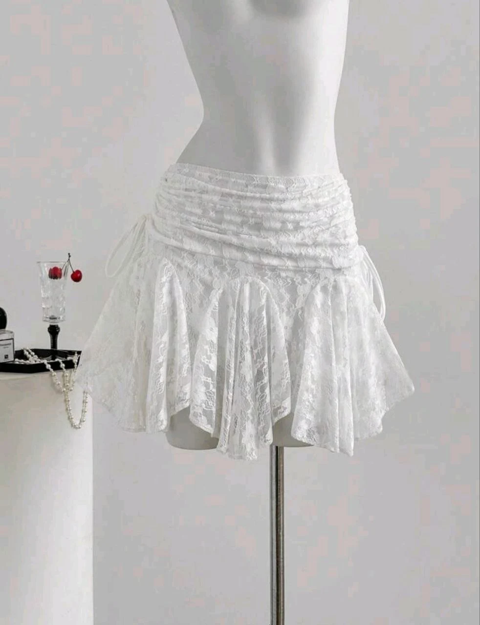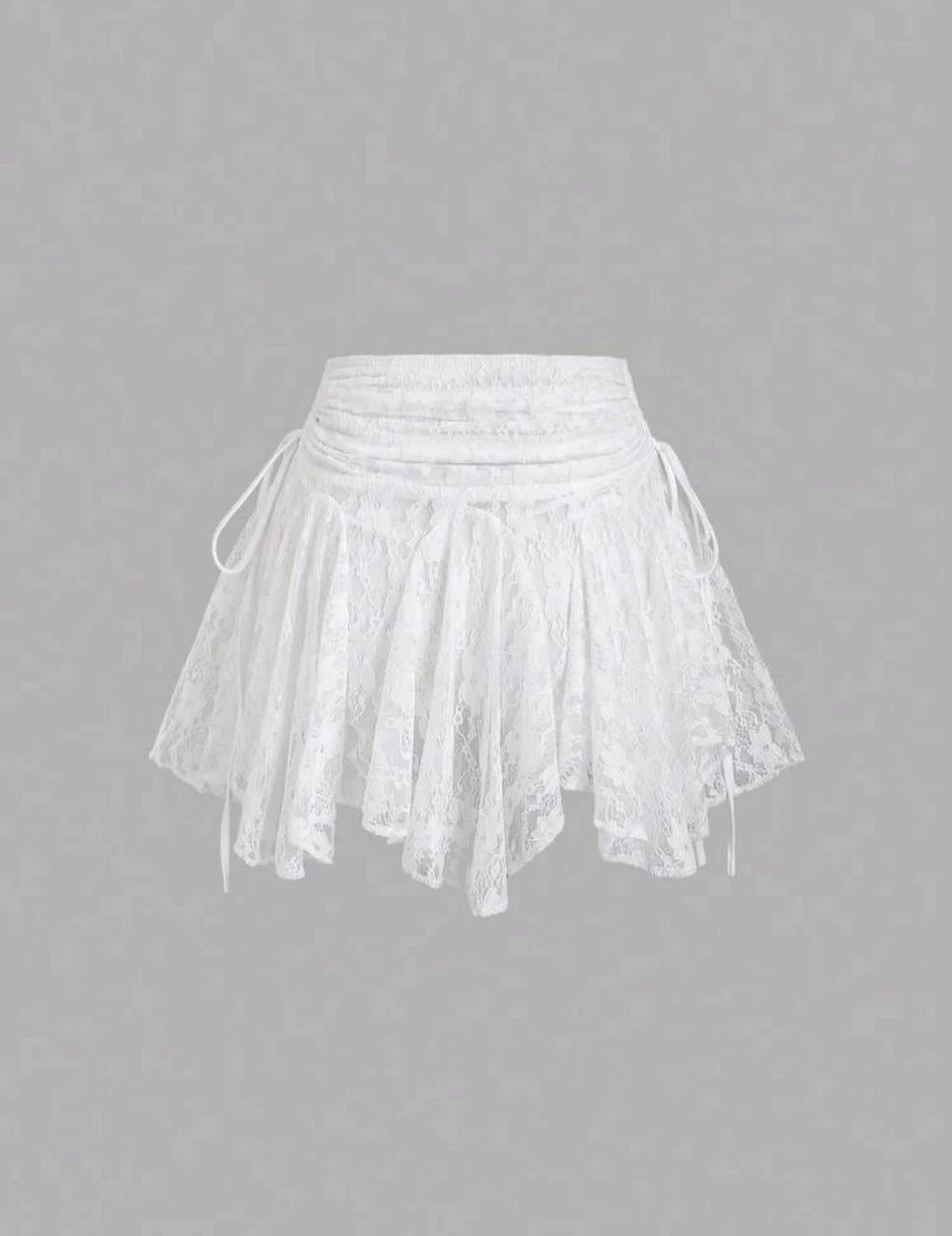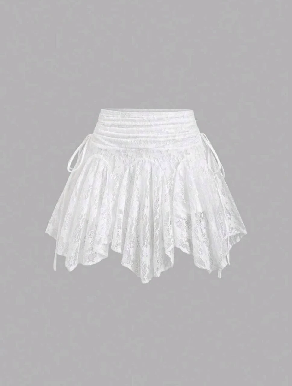 جيبة دانتيل قصيرة بتصميم أنثوي جذاب، مصنوعة من خامة دانتيل ناعمة بتفاصيل كشكشة بتدي حركة وانسيابية مميزة في اللبس. التصميم بخصر عالي مع رباط جانبي بيساعد في ضبط الشكل وبيضيف لمسة شيك وعصرية.